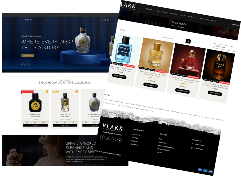 VLAKK is a modern fragrance label focused on crafting premium, long-lasting perfumes with refined aromatic compositions. As a growing brand entering the digital space, VLAKK needed a website that could communicate luxury, trust, and product storytelling while also enabling direct online sales.